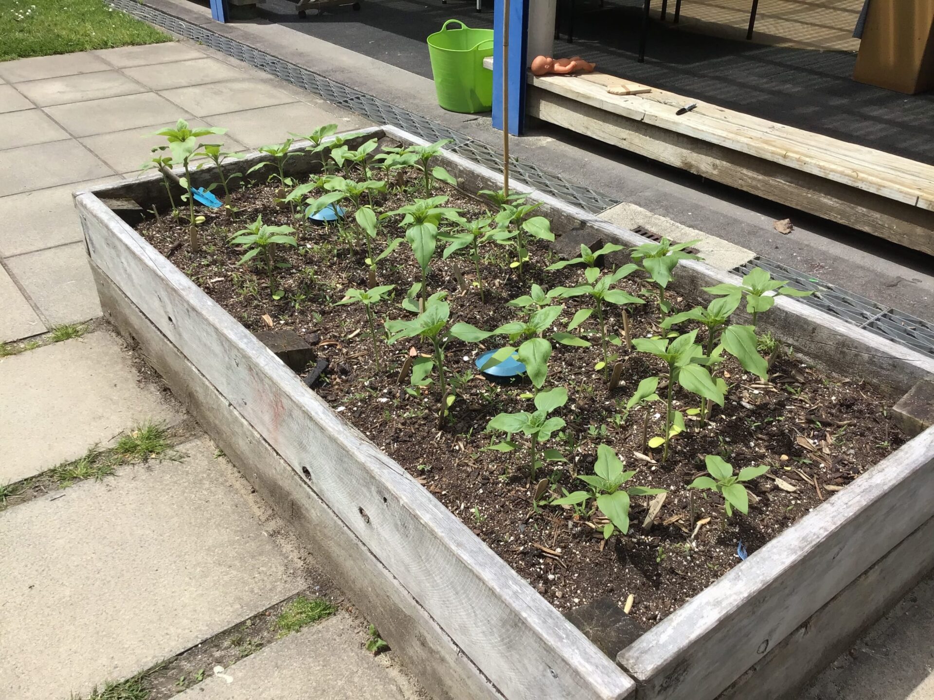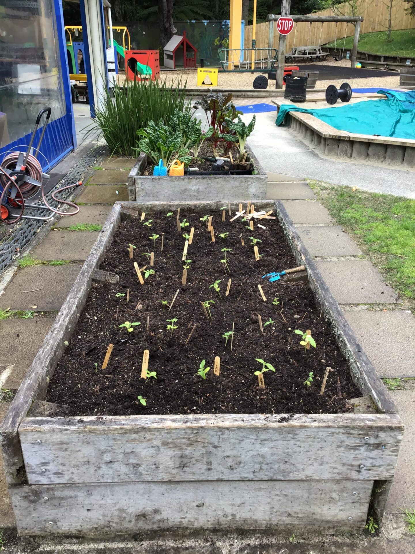 “We managed to get many of our seeds planted just before we went into lockdown. When we came out of Level 4, a few of our tamariki needed to comeback to kindergarten so it was a great opportunity to get our surviving saplings into our vege garden so they could grow.