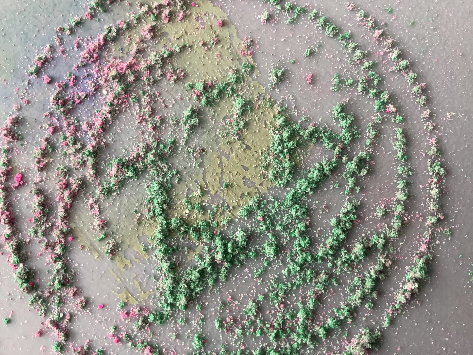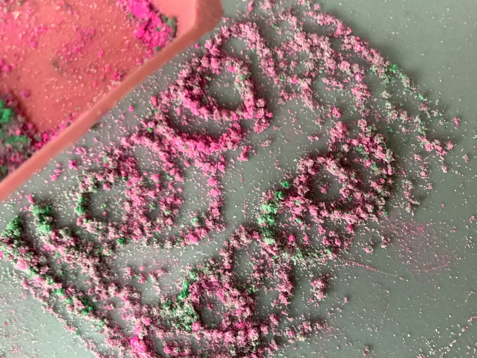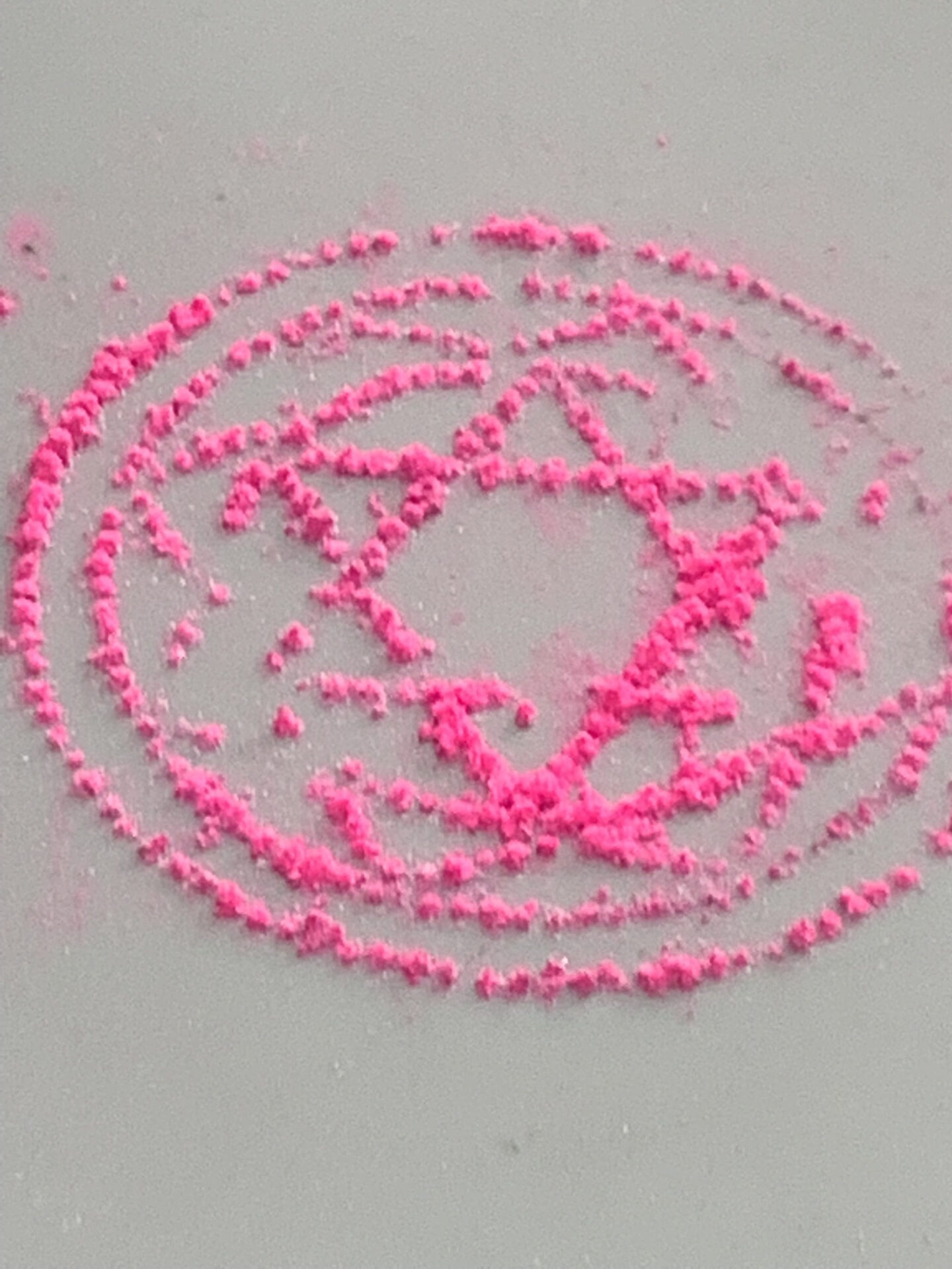 Rangoli patterns are traditionally drawn with the fingers using flour, rice grains or coloured chalk. Rangoli can be square, rectangular or circular – or a mix of all three. They are often symmetrical.