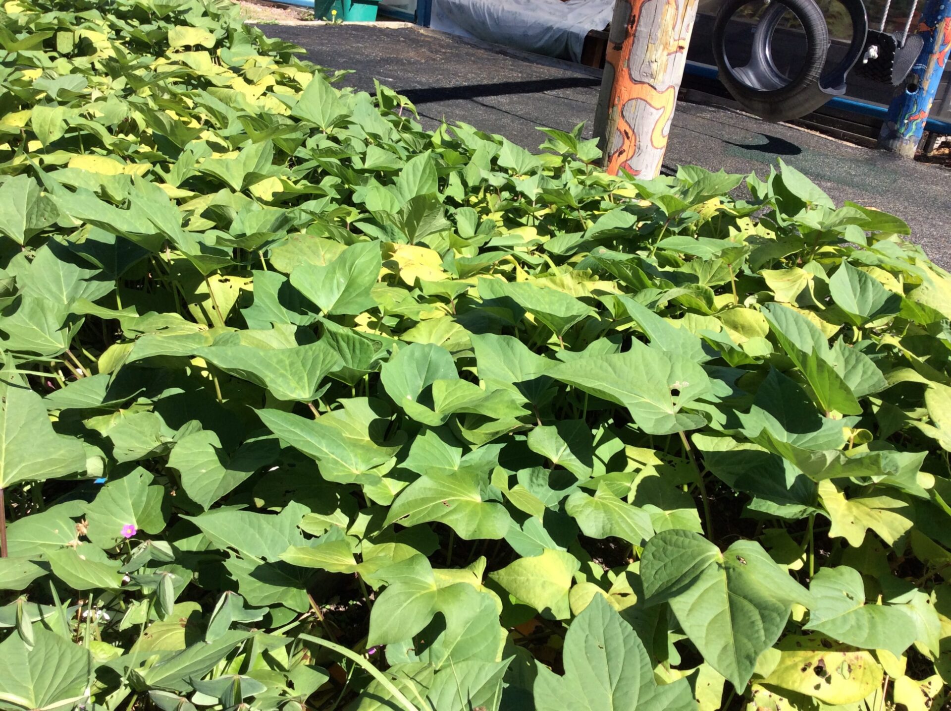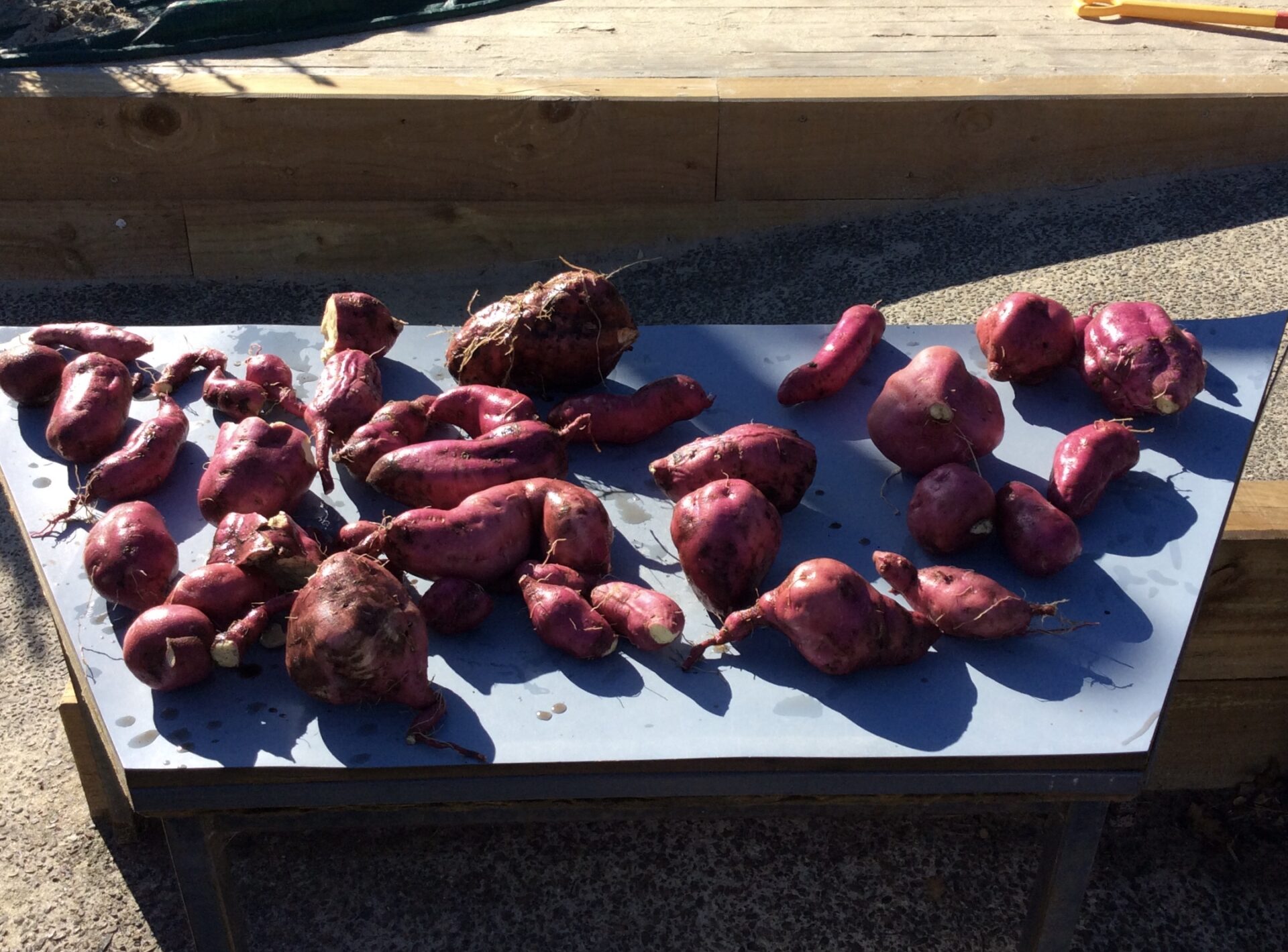 They wondered, if 2 grew into 44, how many would 10 grow into and so the research began. We learnt how to sprout kūmara by experimenting with several different techniques. We learnt how to plant them for maximum productivity and how to really care for them. We planted our 10 kūmara sprouts last November but with the hot summer we were really worried they wouldn’t survive. We didn’t need to be as once again we have a thriving crop.