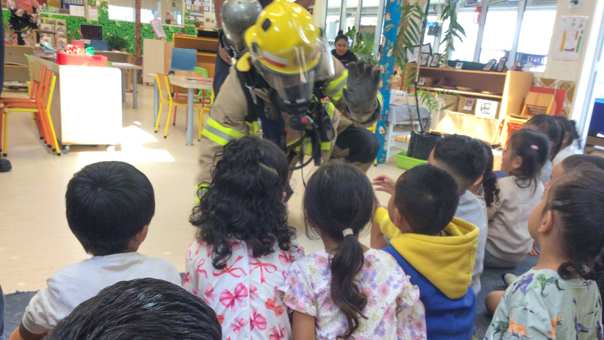 The firefighters introduced us to the special gear they wear to stay safe. Tamariki were fascinated as they learned about the purpose of each item from helmets and boots to oxygen tanks and masks. There was a real sense of wonder as tamariki observed how firefighters prepare themselves before helping others.