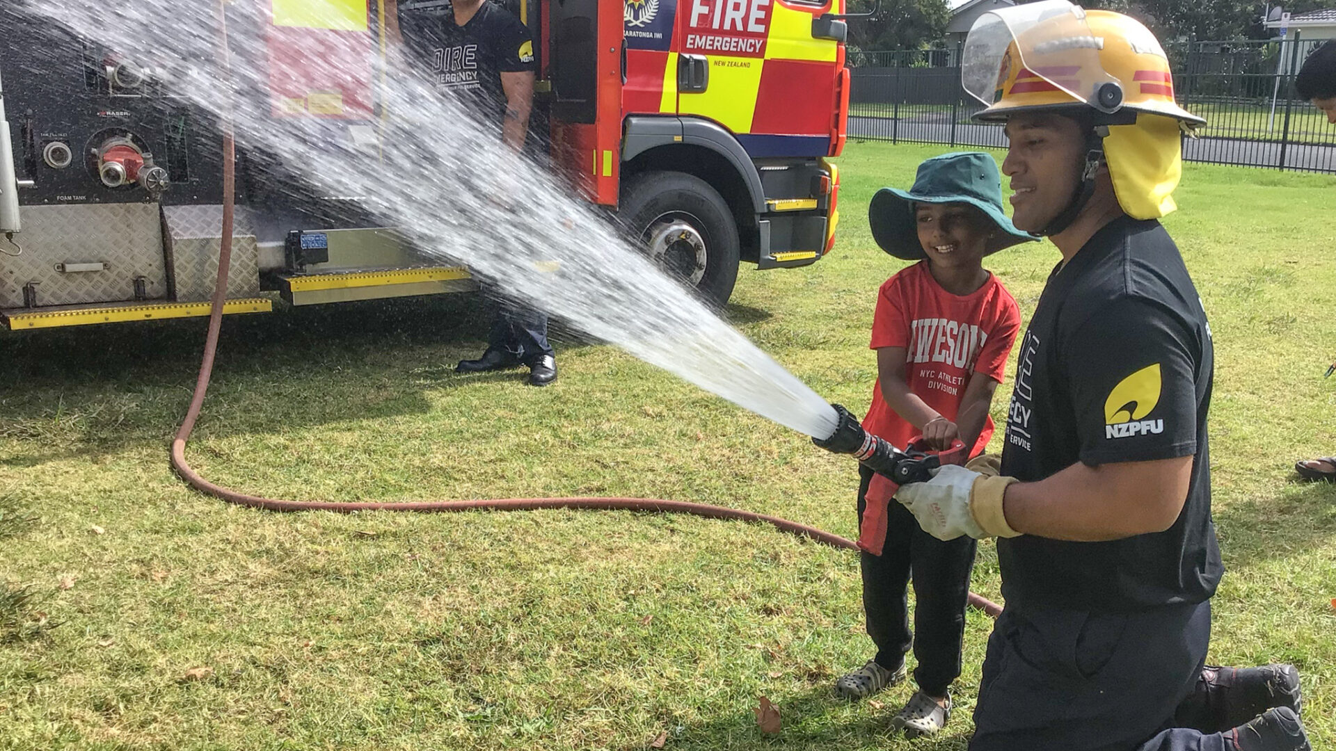 The experience became even more memorable when tamariki had the chance to explore the fire truck and take part in a hands-on activity using the hose to spray water with guidance. This active experience allowed them to connect their learning with real life action, deepening their understanding in a joyful and meaningful way. A key message from the visit stayed with us: Get Out! Stay Out! an important reminder about fire safety that our tamariki can carry with them.
