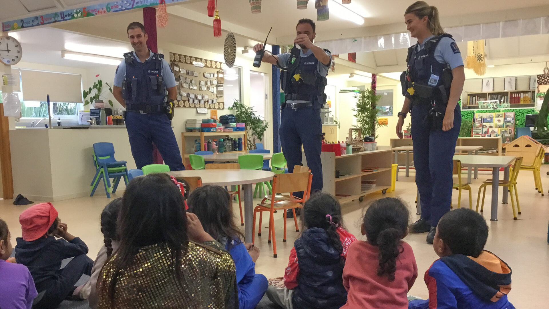 This visit focused on relationships, trust, and understanding the role of police in our community. The officers shared how they help people, keep communities safe, and support us when we need help. Tamariki engaged in thoughtful conversations, sharing their own ideas about rules, fairness, and caring for others.