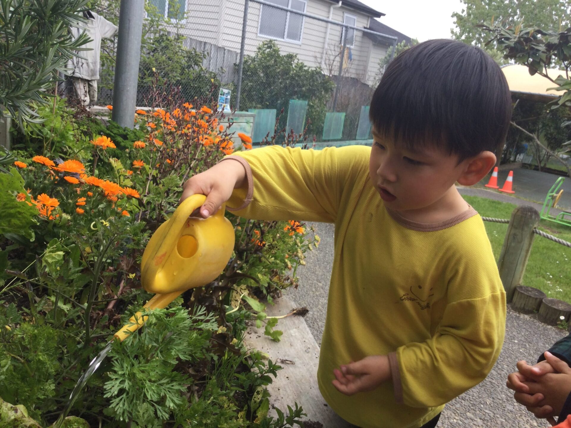 They pumped rainwater from the barrel that is sourced from the Centre’s rainwater tank and watered the seed pottles. The old biodegradable pots were added to the worm farm to maintain a balance of carbon and nitrogen. Later we will be using the worm tea for our beautiful garden that is blooming with spring flowers, broad beans, herbs, spinach, silver beet and pretty crimson feijoa blossoms that children have began noticing. The sighting of bees amongst the flower beds is an ongoing interest. These little scientists are always busy with hands-on experiences which relate to gardening and have fun while keeping it lush and healthy.