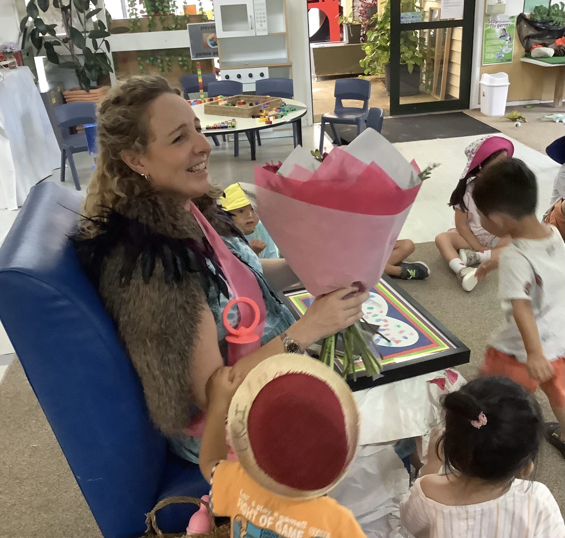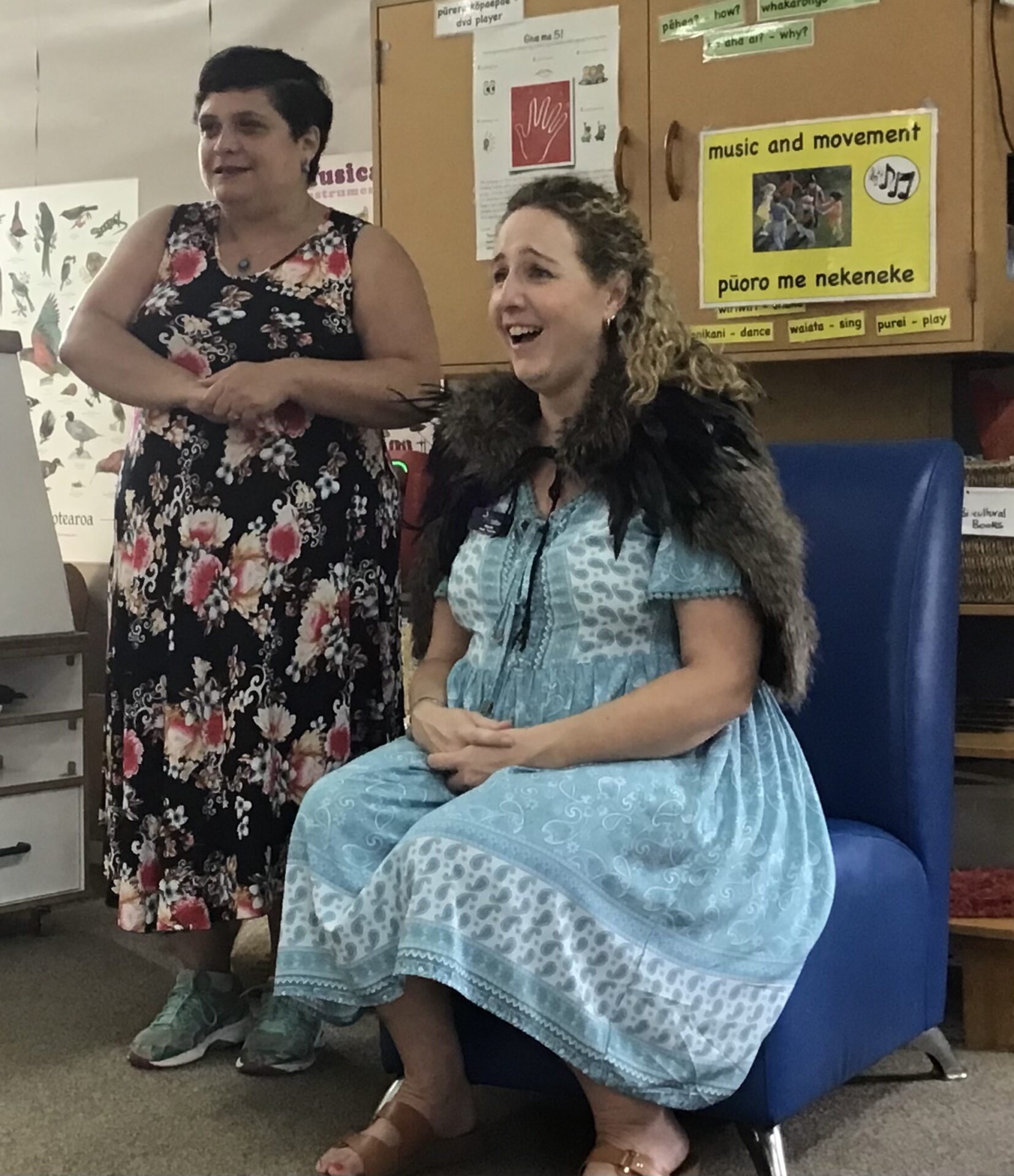 It is with sadness that we said goodbye to our dear friend and Head Teacher of Cascades Kindergarten Nicole Williamson, who is taking time off for the next big journey in her life – motherhood. We incorporated our unique Māori cultural ways of honouring her and thanking her during a special mat time. Nicole was given the korowai as a sign of respect and to honour her. She was welcomed into kindergarten as the guest of honour in a special pōwhiri. The proceedings began by listening to the soulful sounds of the conch shell. Everyone had the opportunity to kōrero on the mat and say how Nicole had touched their hearts.