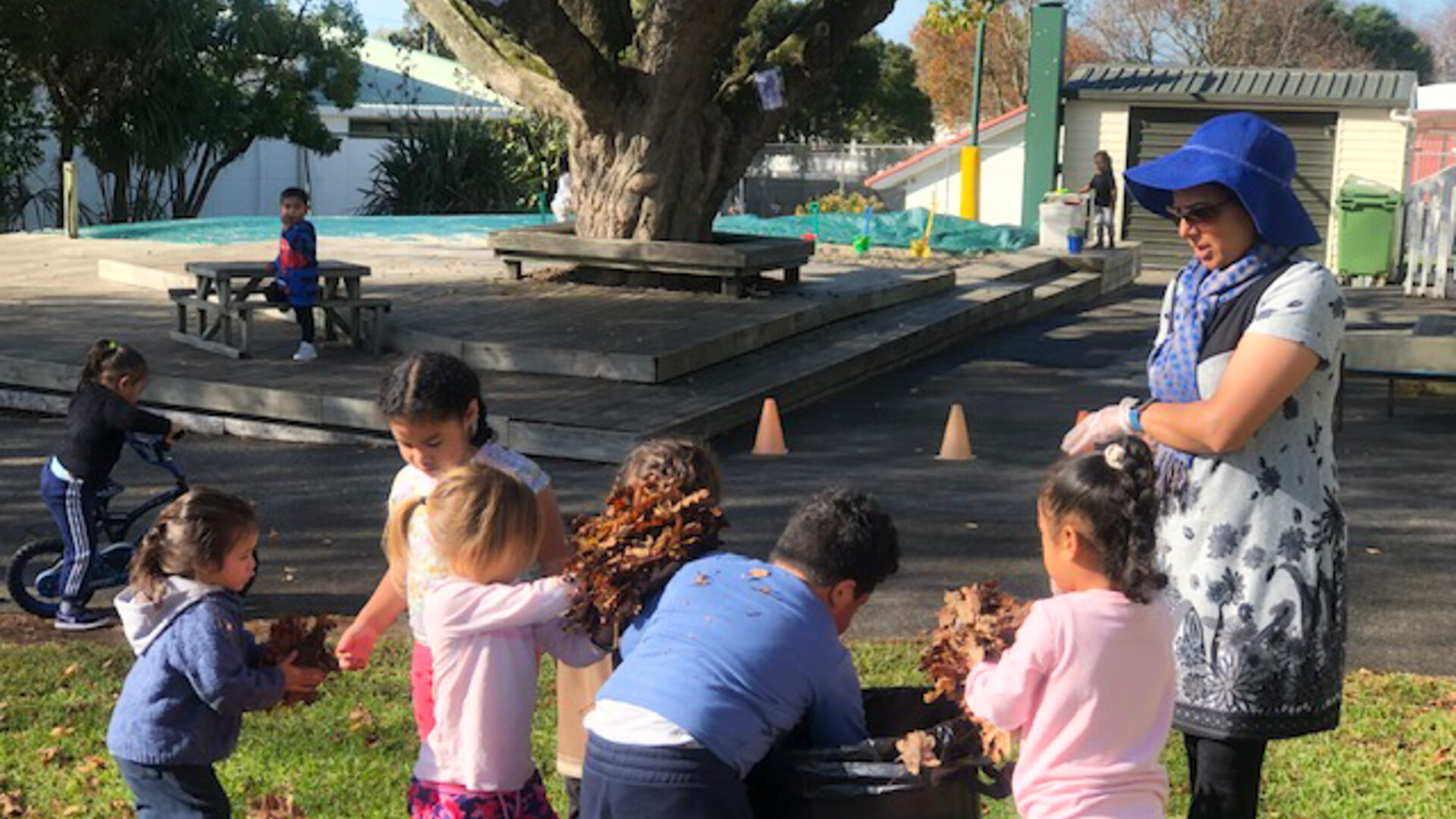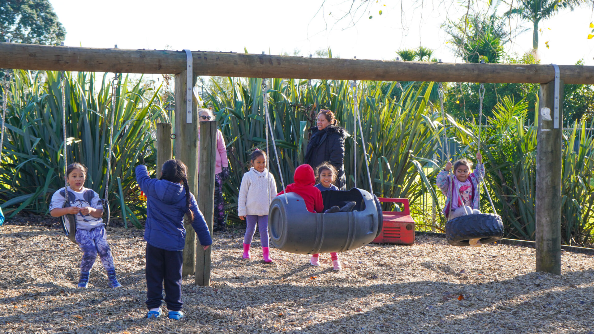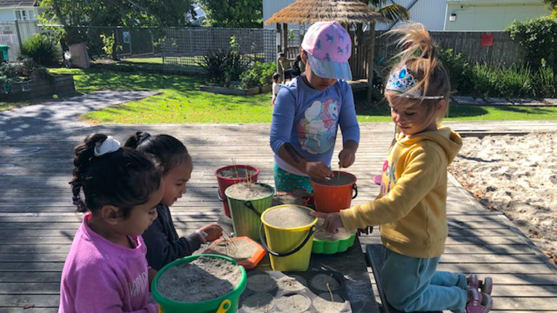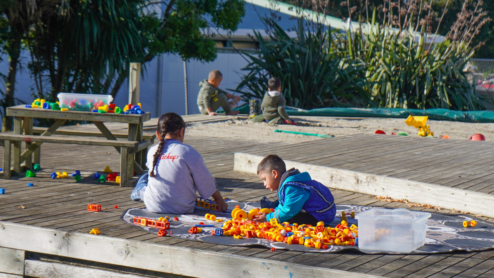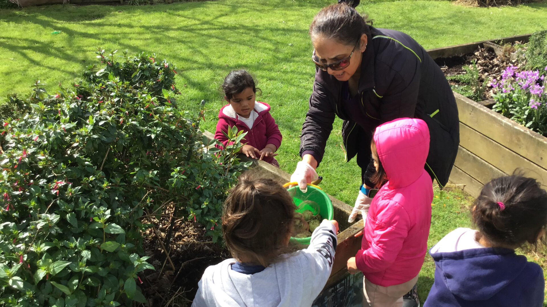 Learning through play – Our large and spacious outdoor environment provides tamariki with many opportunities to run, learn and work collaboratively alongside their friends. They love to observe bugs, insects and plants and are empowered to use their imagination and creativity to explore and discover nature through harakeke, gardening, composting, worm farming, recycling, active movement and more.