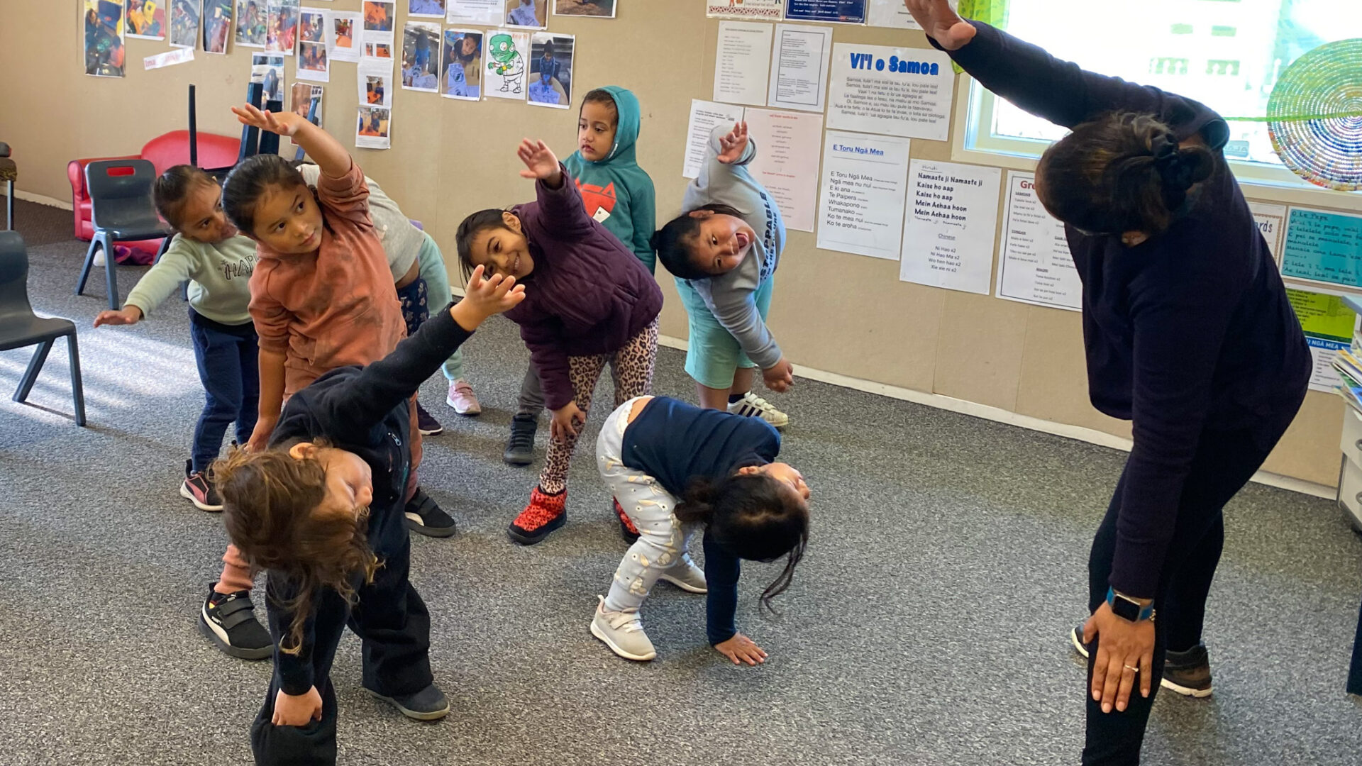 Kia Ora, Talofa lava, Sat Sri kal, Kia orana, Fakaalofa Lahi atu, Namaste, Ni hao ma, Malo e Lelei and Welcome to Ōtāhuhu Kindergarten