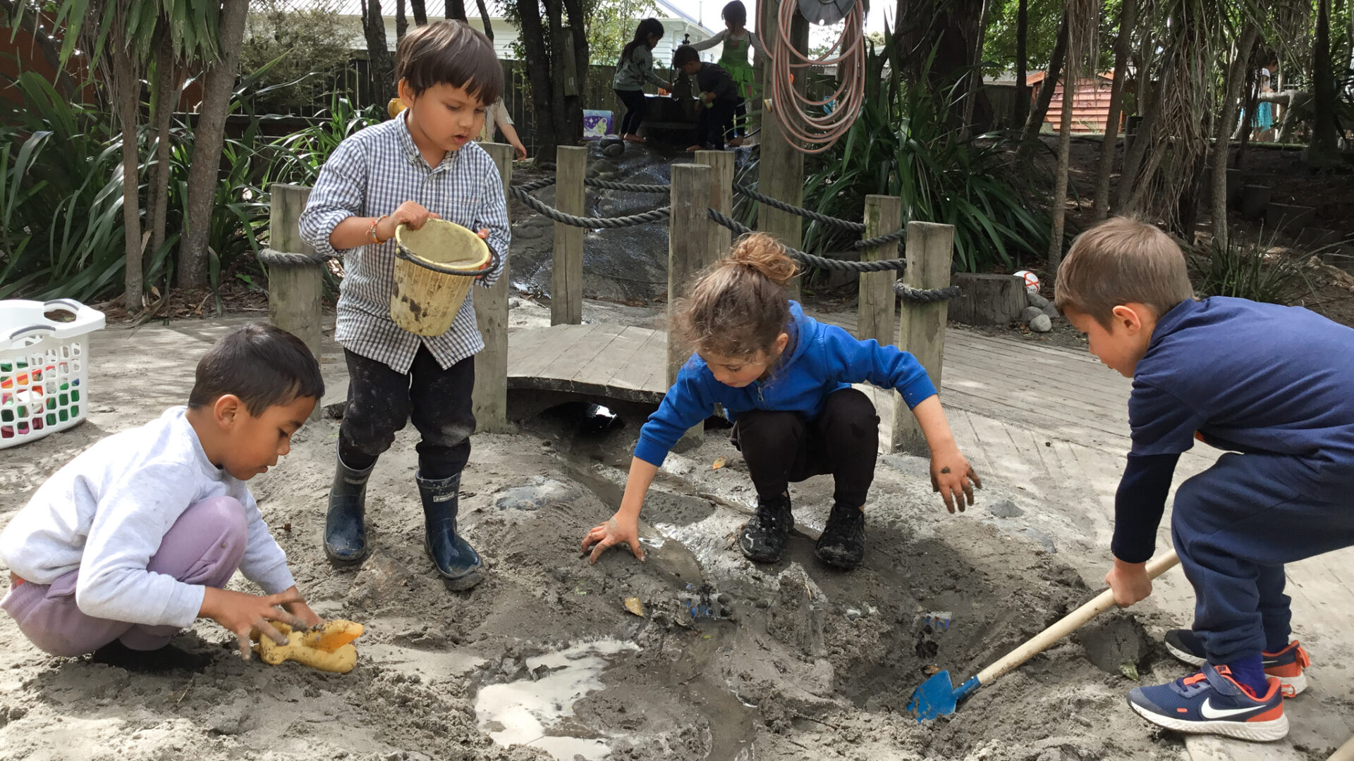 Awesome Outdoor Spaces – Our outdoor setting has everything! Our children are physically active, imaginative and have a great time together. Whether it's having tea parties with their friends, building mountains in our sandpit, hiding out in our ngāhere, or climbing and running – whatever your child loves, we can cater for it. Hidden out the back of our outside area is our whare, Te Puna Aroha.