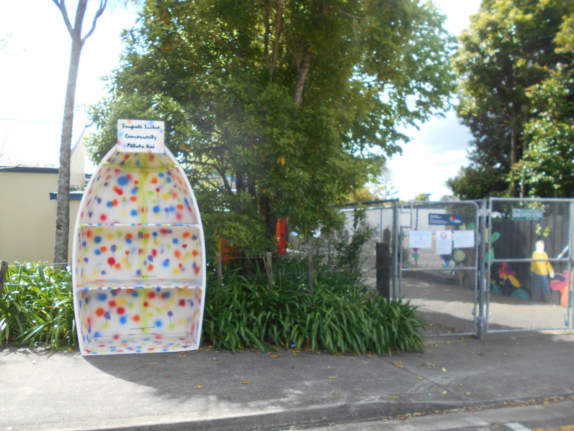 In the way that rural communities do, lots of parties came together to make this project happen. Tony Kloet (husband of Taupaki’s long term Head Teacher – Sue Kloet who passed away tragically a few years ago) offered to pick this up and transport it for us. We also had the Paaske family (whose two daughters are keen Kindergarten attendees) very keen to pick up the boat from outside the kindergarten staff carpark to take home as a boredom-busting painting project during lockdown. We had some lovely updates of the children painting the boat in their backyard and they delivered it back to us looking colourful and ready to go. The pantry is now in a prominent place outside the kindergarten gates, under the cooling shade of the trees that will help keep the produce fresh.