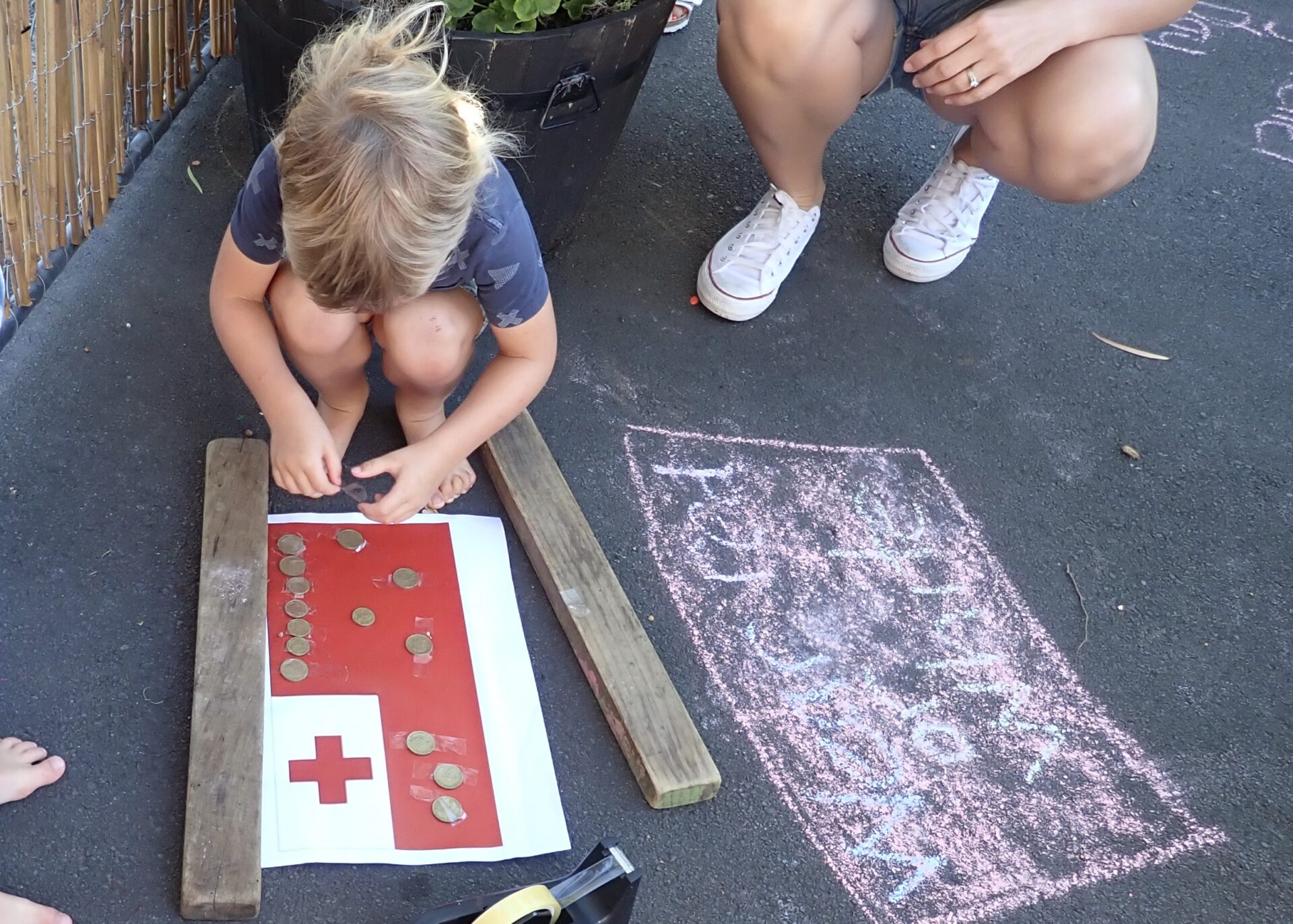 “One of the children came up to me asking me to look at two pieces of paper they had cut up and written on. One had $100 written in felt pen and the other had letters written in red on it. He explained to me that he had made $100 to go on the Tongan flag tomorrow and the other note reminded him to wear red and white.