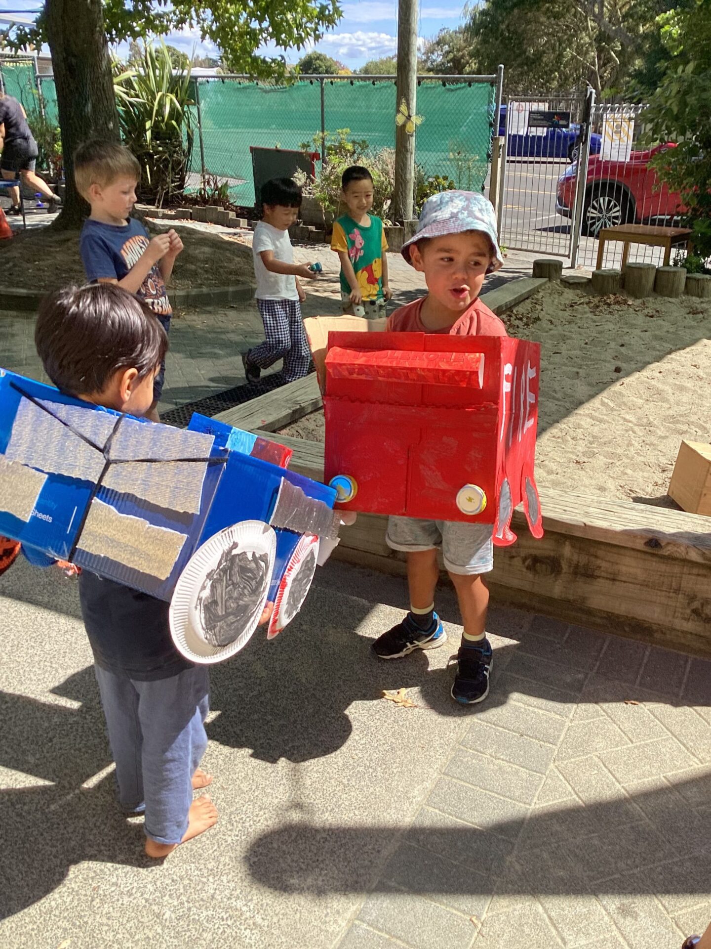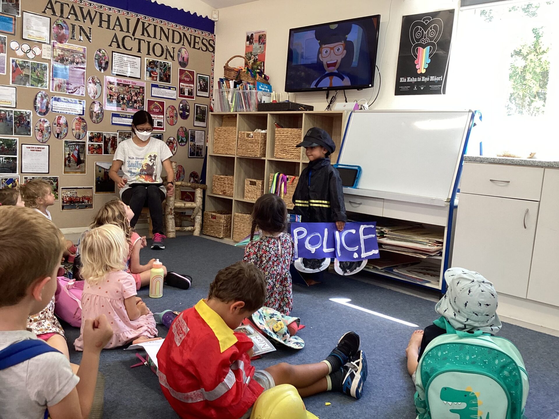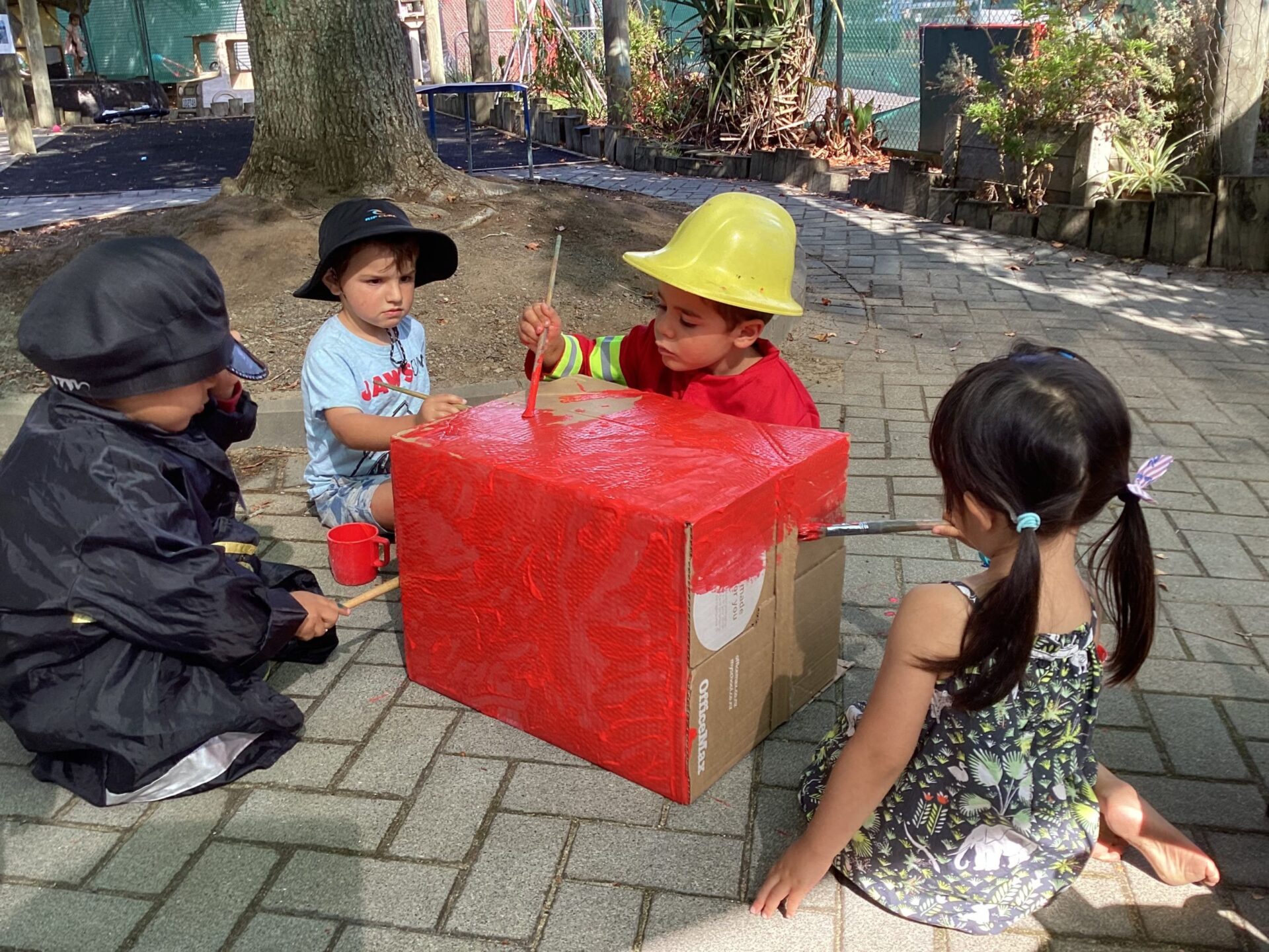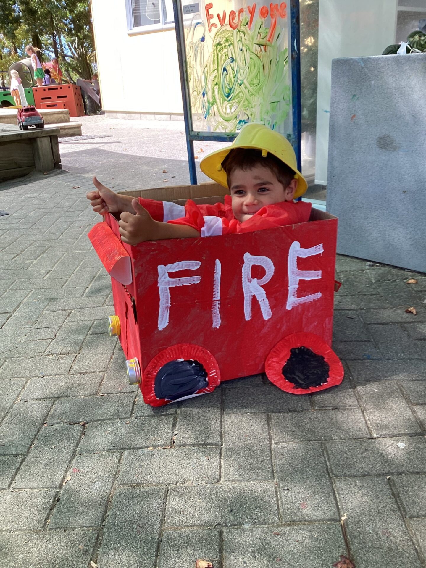 Regular opportunities are provided for tamariki to be familiar with the fire drill and earthquake drill at Farm Cove Kindergarten. Currently, some tamariki are showing a desire to take on a role of rescuing people in danger and are doing it through identification with different professions – firefighter, police officer, traffic controller, doctors, teachers or even builders are some of the play roles that encourage empathy among tamariki.
